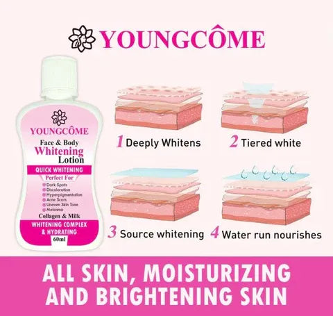 - This Youngcome Body Whitening Lotion is formulated with highly effective ingredients that whiten the skin on your body.