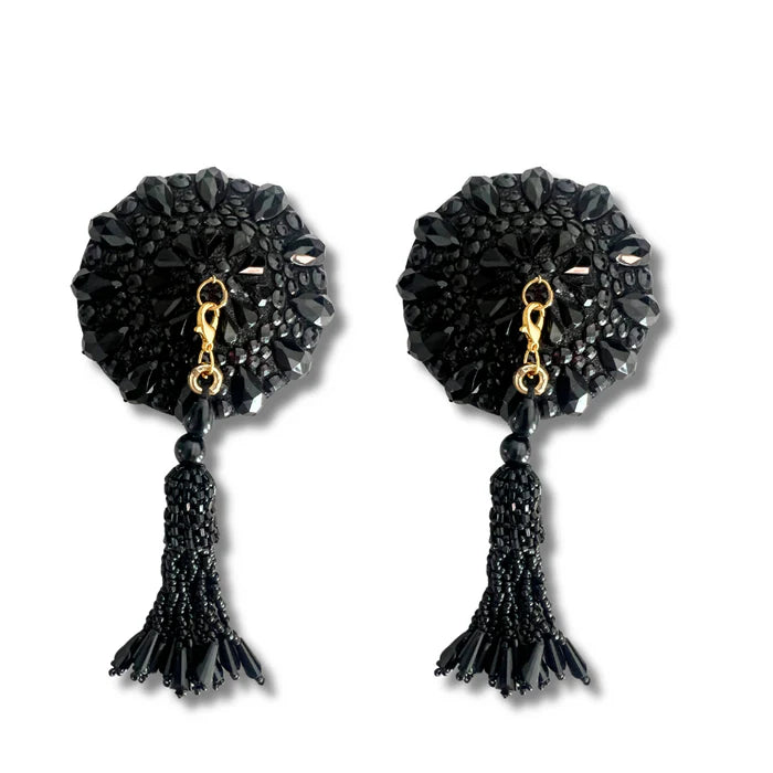 BLACK BEAUTY Glitter, Gem Design with Handbeaded Crystal Tassels Pasties Nipple Covers (2pcs)