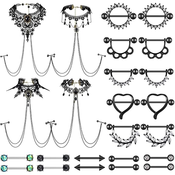 - Large Quantity: you will receive 20 pieces of black nipple rings in 10 styles and 4 body chains, allowing for multiple styling possibilities; Measuring approximately 14G /1.6 mm of nipple rings, it promotes a variety of looks without needing to repeat the same adornment daily life and some special occasions