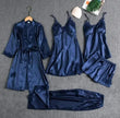 5 Pcs Women's Stitched Silk Plain Night Suit