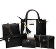 • Material: Leather• Pattern: Printed• Number Of Pieces: 5 Pcs• Product Feature: Top Handle• Gender: Women's• Color: Black, Green, Grey, Brown, Blue, Mustard, Pink, Red• Package Includes: 1 x Hand Bag Set• Length: 12 Inches• Width: 13 Inches• Height: 17 Inches• Note: There might be an error of 1-3 cm due to manual measurement, and slight color differences may occur as a result of varying lighting and monitor effects.