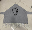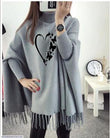 Women's Polyester Heart Printed Poncho Cape Shawl